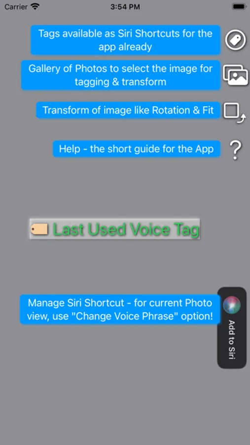 PhotoVoiceTag automates the creation of Siri Shortcuts that allow you to get the desired image on the screen at any time by simply saying a keyword to the voice assistant.You can easily view and change the list of voice tag commands that are currently available.