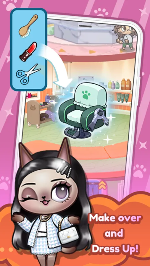 You become a true manager who can hire staff, develop their business, improve the salon to make it even more attractive to customers, and do everything to make cats happy and make them purr with joy!