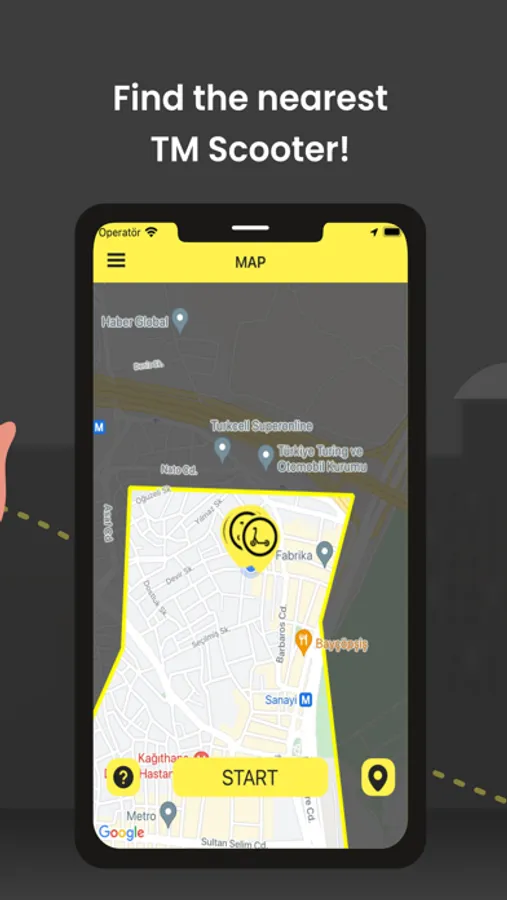 - Find the TMRide scooter near you on the map.