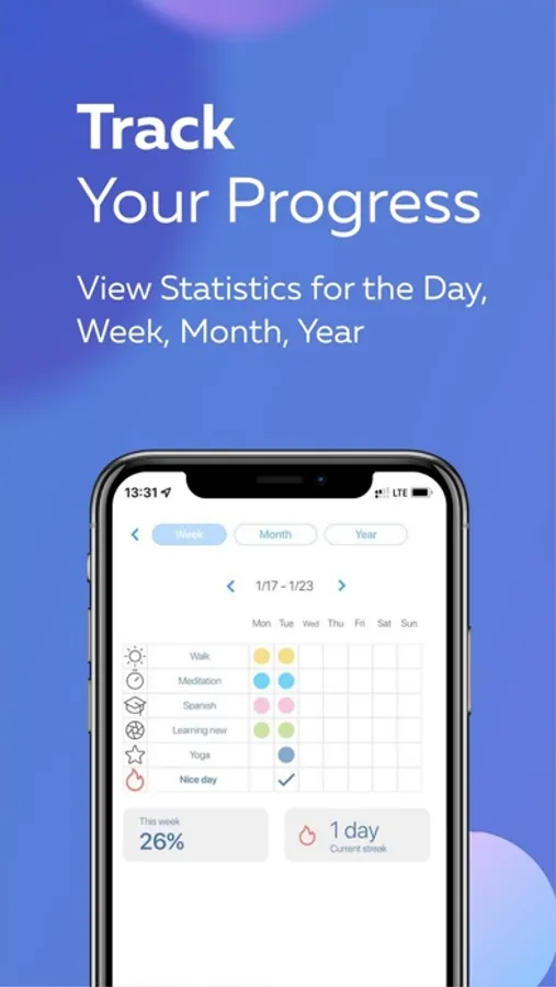 Manage your habits and analyze your progress. View the charts of each habit. Learn the stats of all habits for the day, week, month, year.