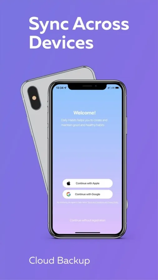 Create 5 habits in a free version with registration. The app backup is stored for 180 days after turning the feature off. You can also use the app without registration.