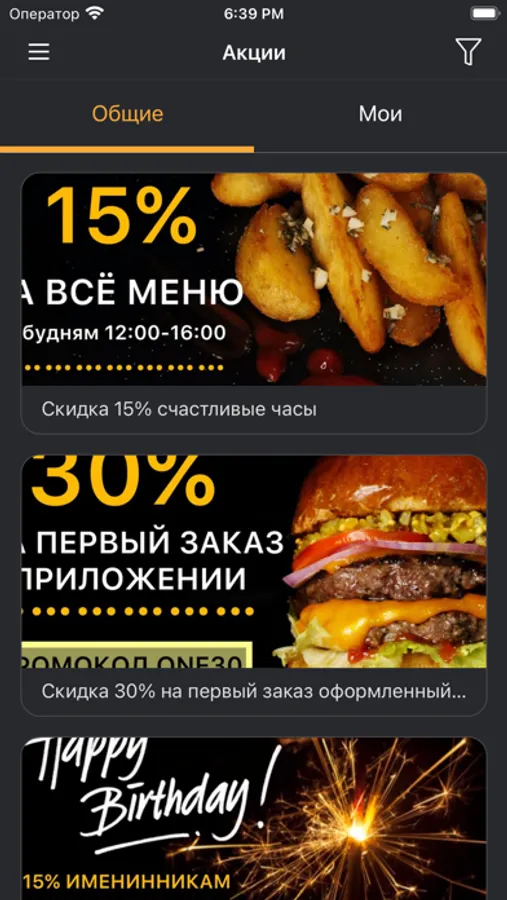 по работе мобильного приложения, качеству обслуживания и блюд.