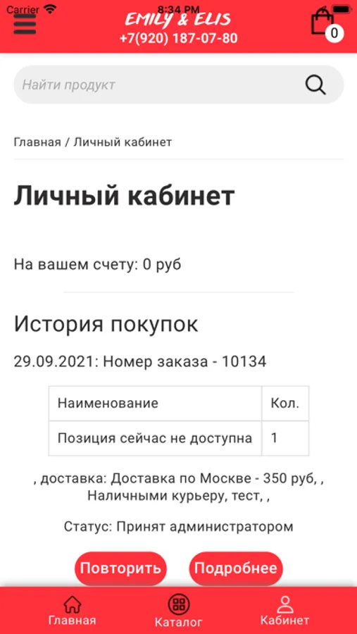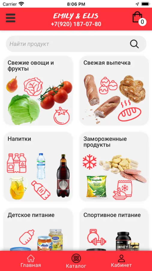 Emily и Elis - приложение для заказа доставки продуктов по городу Удомля.