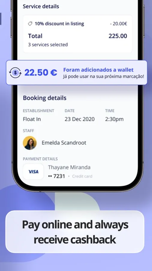 Pay with cashback and receive up to 3% of the booking amount back, on each reservation.