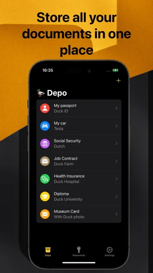 Simple app to easily store your document copies with some awesome features to ensure your convenience and security.