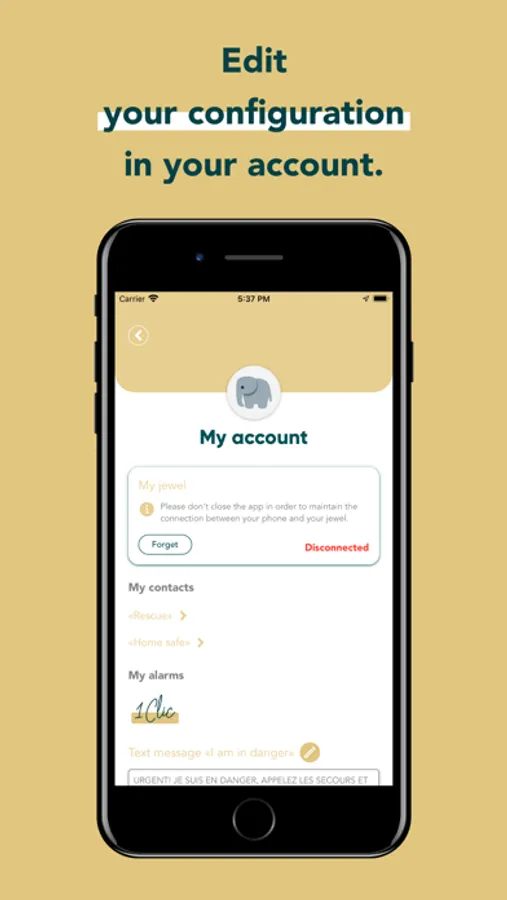 MyEli is a connected jewel, which will allow safety and peace for everyone : last generation bluetooth (BLE 5.2), with miniaturised electronic components, connected with your smartphone, in an trendy jewel which fits perfectly with your daily outfit. It goes unnoticed, as if you were wearing your jewellery, you can secure yourself at any time