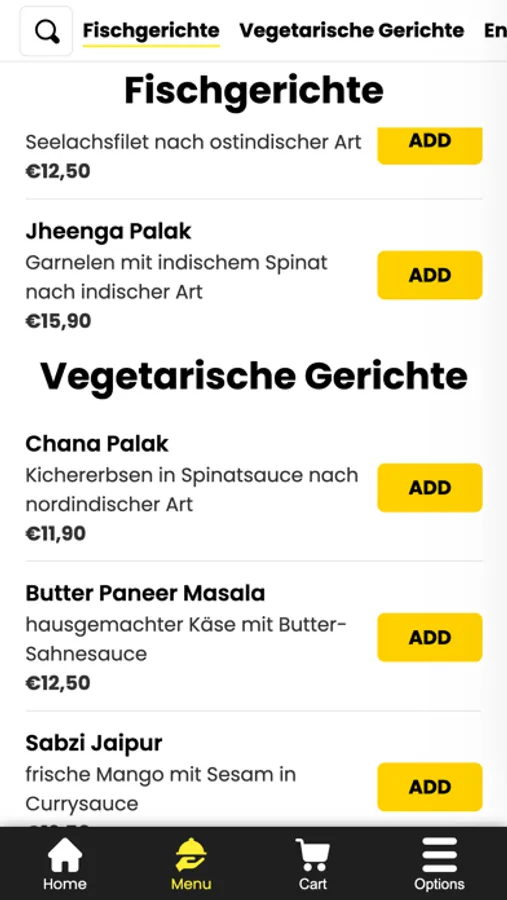 - Durchsuchen Sie die Speisekarte des Restaurants und sehen Sie sich alle anpassbaren Optionen im Voraus an
