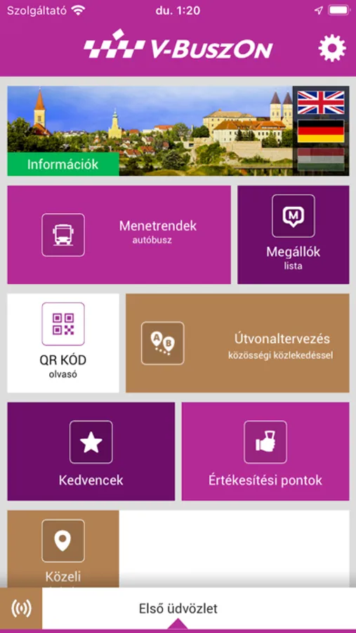 A V-BUSZ Kft. által szolgáltatott, hivatalos adatbázis alapján működő program, naprakészen mindig a legfrissebb veszprémi helyi menetrendi adatokkal működik. Az alkalmazás képes pontos képet adni az aktív járatok pillanatnyi pozíciójáról, valamint tájékoztat a megállókba való beérkezésükről - feltüntetve a menetrendtől esetlegesen eltérő adatokat is.