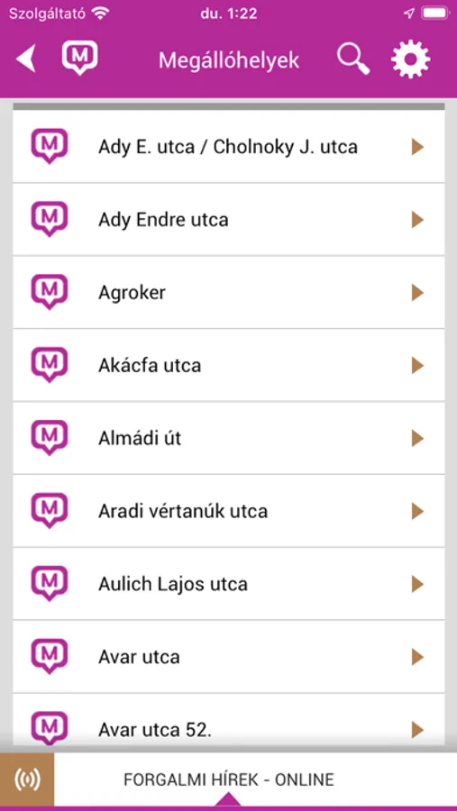 - forgalmi hírek megjelenítésével, ezekhez kapcsolódó