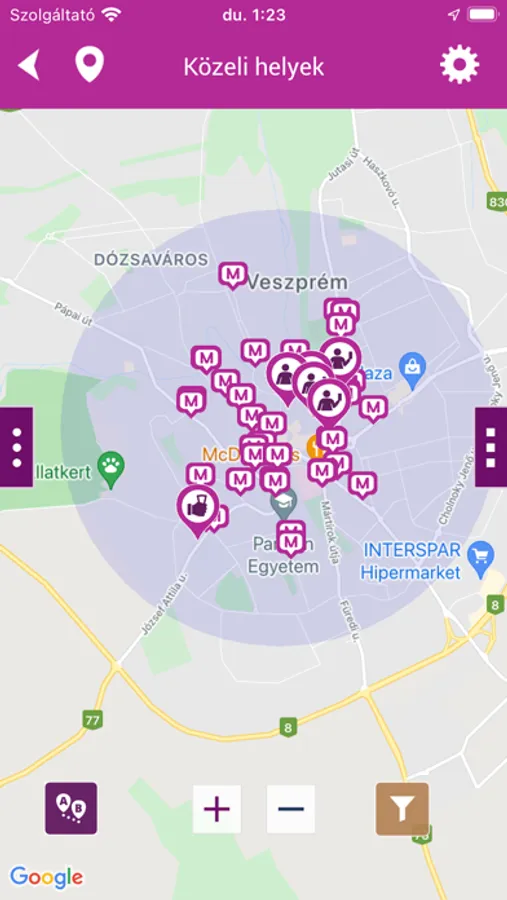 - aktuális pozíció alapú térképnézet, megállóhelyekkel