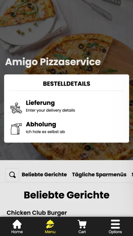 Mit der Amigo Pizzaservice Mobile App können leckeres Gericht bequem von zu Hause aus genießen. Stöbern Sie in unserer Speisekarte, wählen Sie die Gerichte aus, die Ihnen schmecken, und geben Sie Ihre Bestellung in Sekundenschnelle auf.