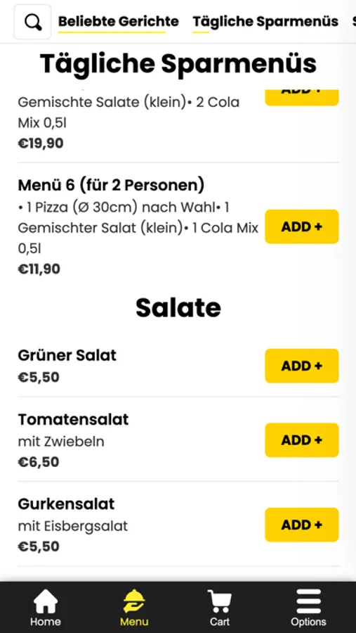 - Durchsuchen Sie die Speisekarte des Restaurants und sehen Sie sich alle anpassbaren Optionen im Voraus an