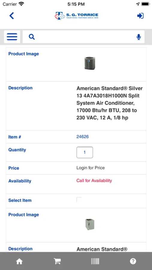 The S. G. Torrice app puts all things HVAC right at your fingertips. The entire S. G. Torrice experience is all in one place and features: Live account-specific pricing, Inventory availability by branch, Custom kits for quickly & easy ordering, The ability to view and manage account information, AHRI rated matchups with our new and improved System Selection Tool, Shopping on the go and much more!