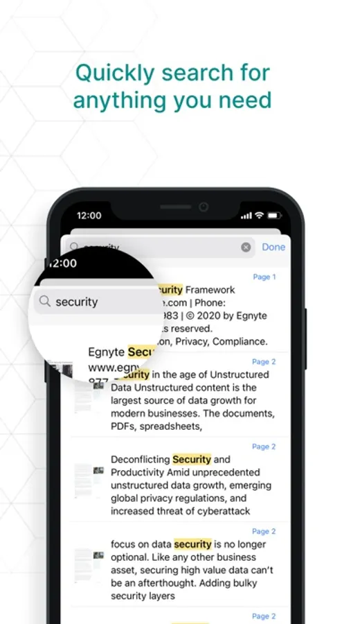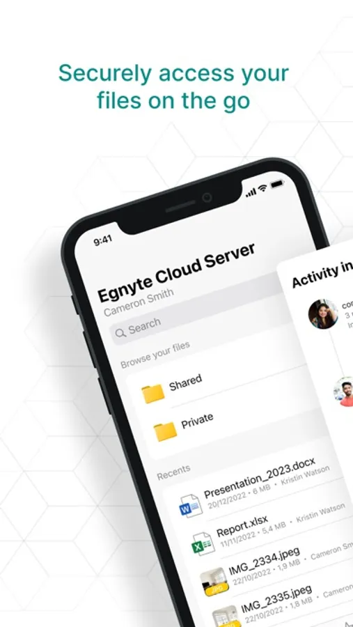 With the Egnyte Mobile App you can extend the office and work from anywhere with ease. You can access data securely, preview files, upload new content, and collaborate on folders and file links, edit and co-edit files in popular formats. You can also easily set up permissions for authorized access, create link expirations, and receive notifications when files are accessed.