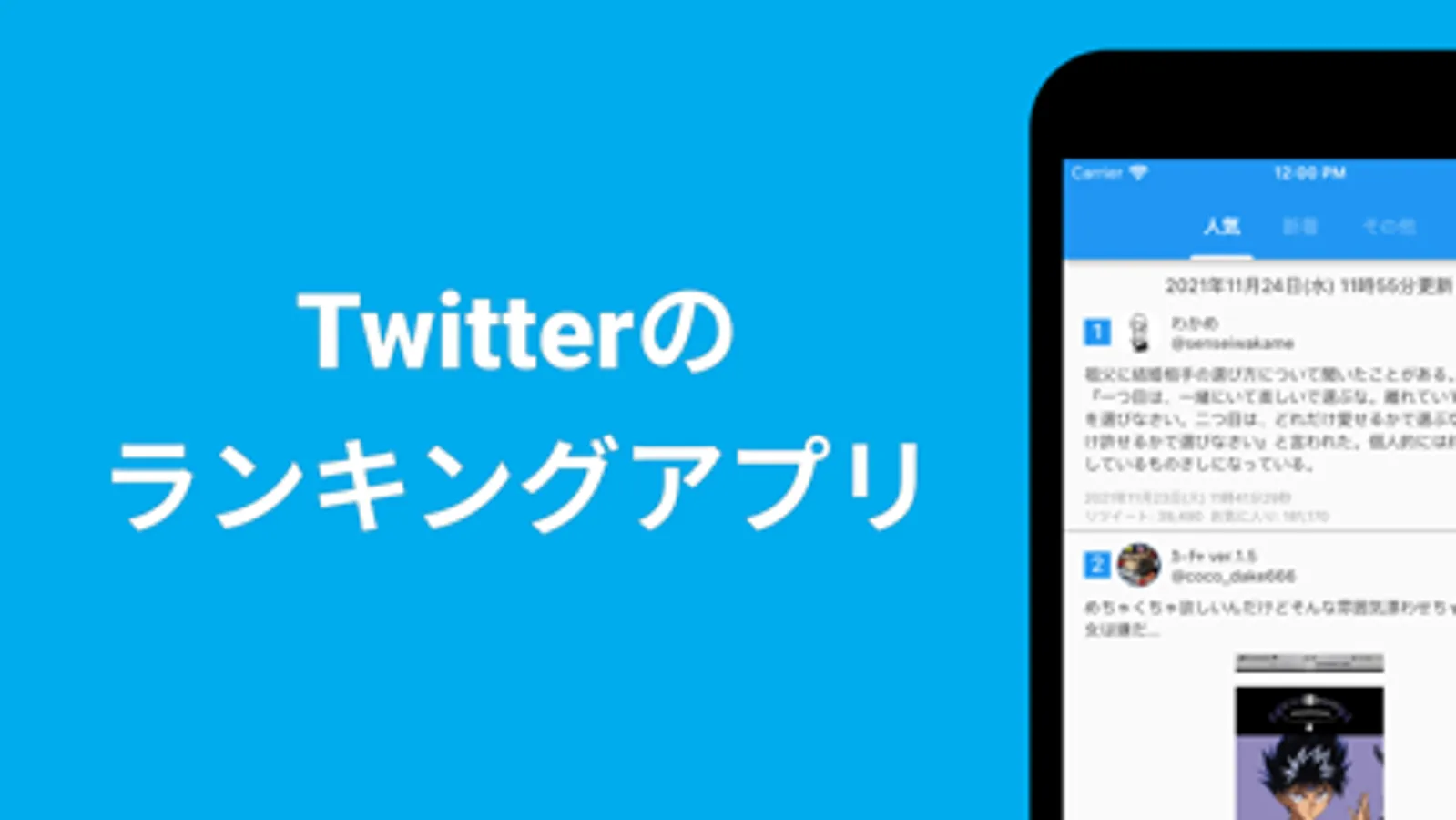 Twitterのバズってるツイートをランキング形式でチェックできます。