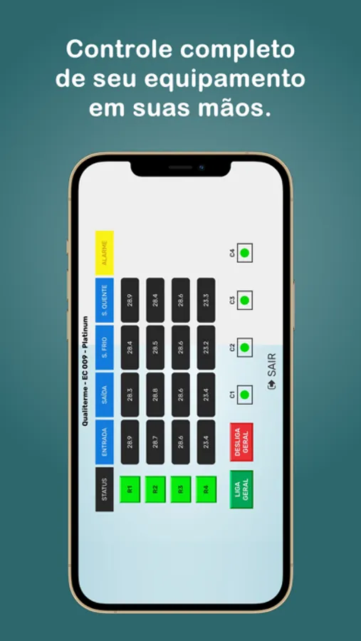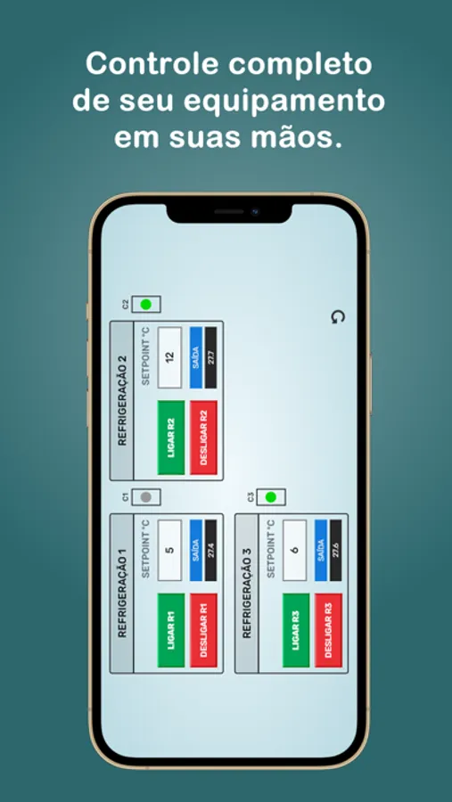 Nas versões avançadas, você também poderá interagir com o equipamento. Podendo, ligar e desligar, fazer ajustes de set-point e definir prioridades no recebimento de notificações via app.