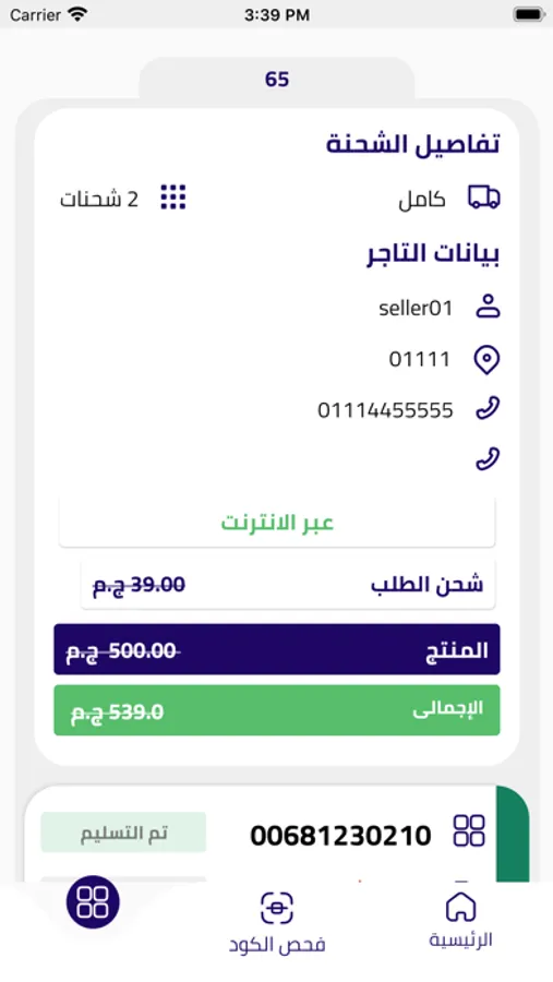 يوفر التطبيق إمكانية الرجوع للشحات المسجلة والتي تمت من خالل التطبيق-