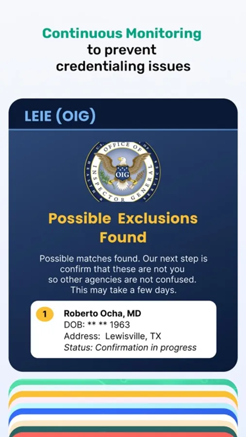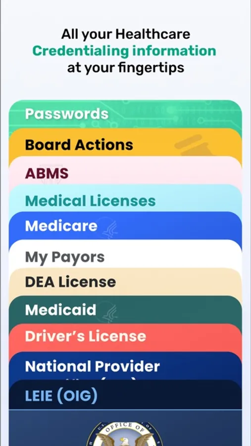 Finally, a reliable, easy and secure way for providers to own and share their Federal and State Healthcare credentials in a 100% portable framework. NuCo Credentialing Wallet (“NuCo Wallet”) proactively reconciles most Federal and State credentials and presents them to the owning provider in a simple to view format. The NuCo Wallet also serves as a one-stop-shop virtual administrator for providers with automated expiration / renewal reminders, sharing of all or selected credentials to designated individuals, management of login and passwords, calendar of upcoming critical dates and a secured communication channel with our dedicated Ambassadors who are ready to help with all your credentialing needs and questions.