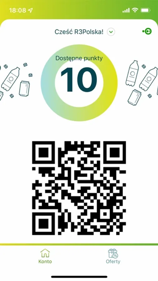 Wystarczy, że po oddaniu butelki do recomatu zeskanujesz kod QR z aplikacji, a punkty natychmiast znajdą się na Twoim koncie.