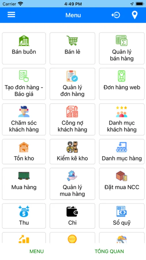 - Tạo phiếu thu, chi, xem sổ quỹ