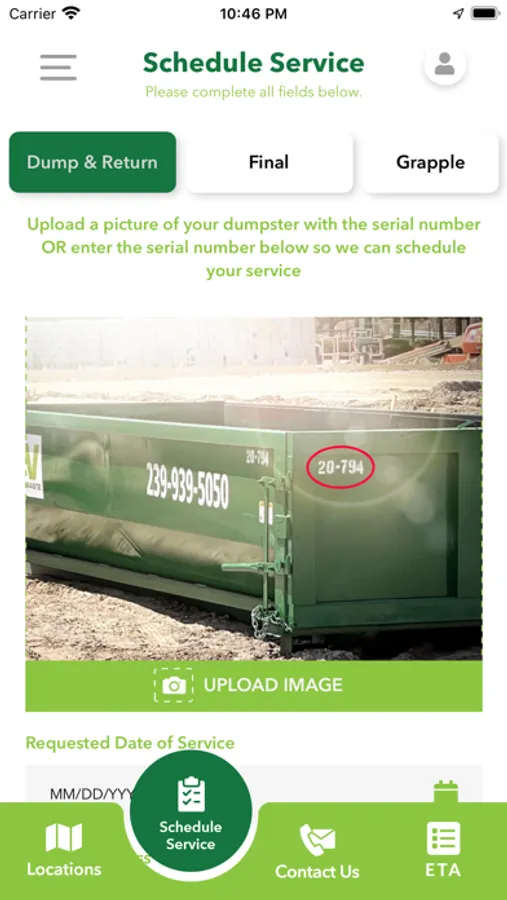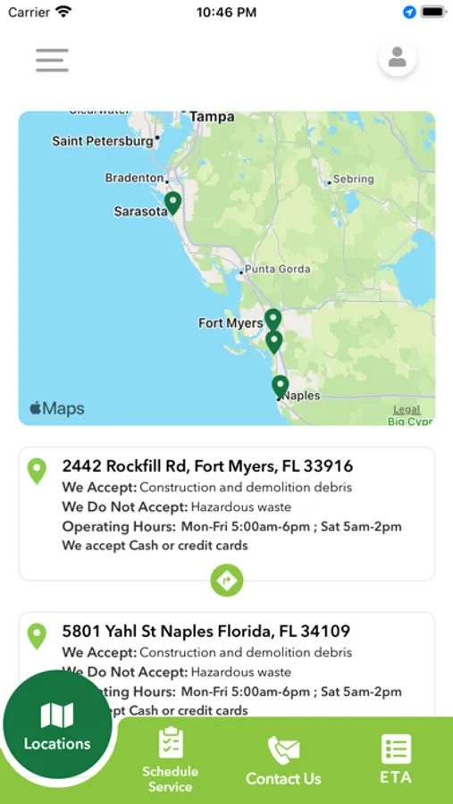 Southwest Waste is proud to offer yet another way to quickly schedule your dumpster services while on the go using our mobile app. Simply create your profile and snap a picture of your serial number or enter the address of where the dumpster is located and we'll handle the rest. While we're always happy to speak with you on the phone or via email, this is just another way we love to communicate with our awesome customers. In addition you can also find convenient locations to dispose of your debris at our facilities in the Southwest Florida area.