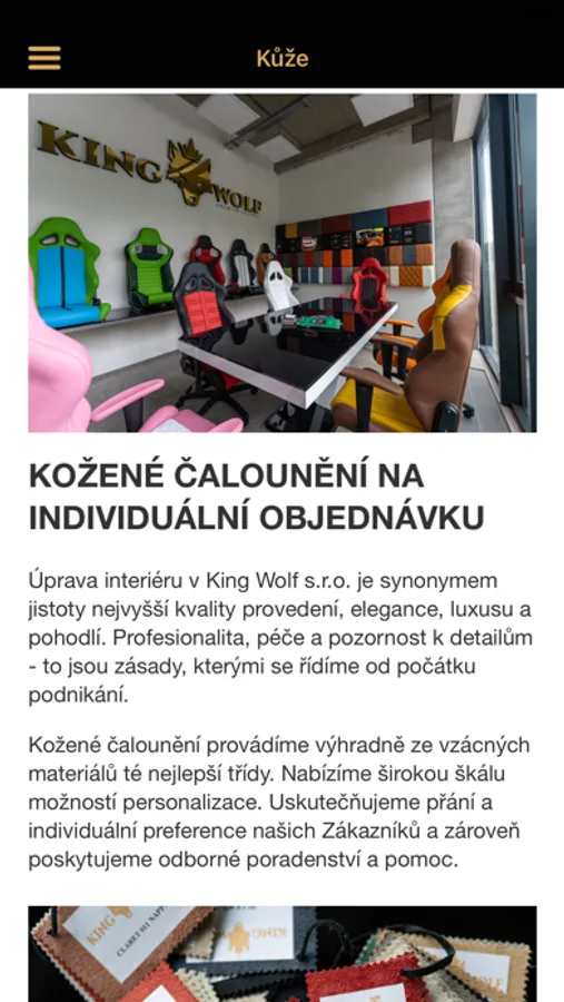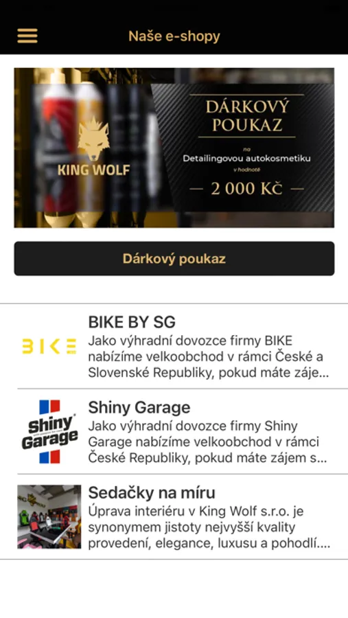 Aplikace KING WOLF je šikovným pomocníkem do kapsy. Najdete v ní potřebné informace o společnosti, e-shop firmy, důležité kontakty nebo kontaktní formulář. Aplikace obsahuje nabídku služeb či ceník toho, co firma nabízí.