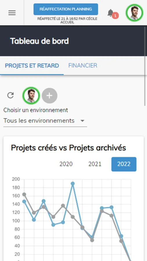 L'outil permet la gestion de plusieurs projets dans des environnements différents selon vos ressources et leurs tâches attribuées. Supprimer les points quotidiens !