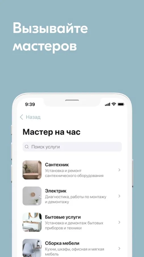 - Вызывать мастера, следить за статусом заявки, общаться в чате и оценивать качество работы;