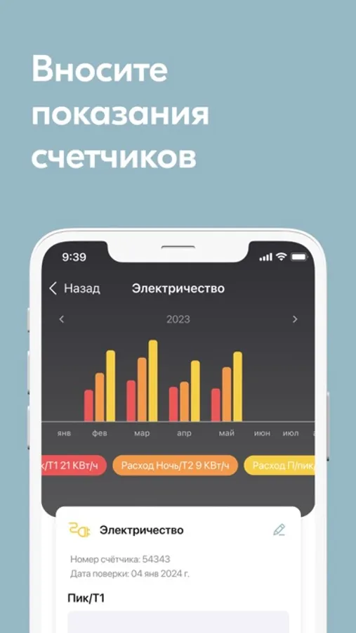 - Отправлять или просматривать показания приборов учета;