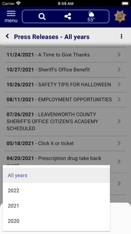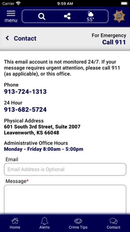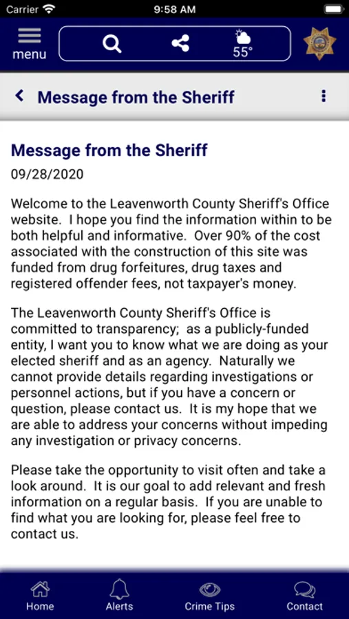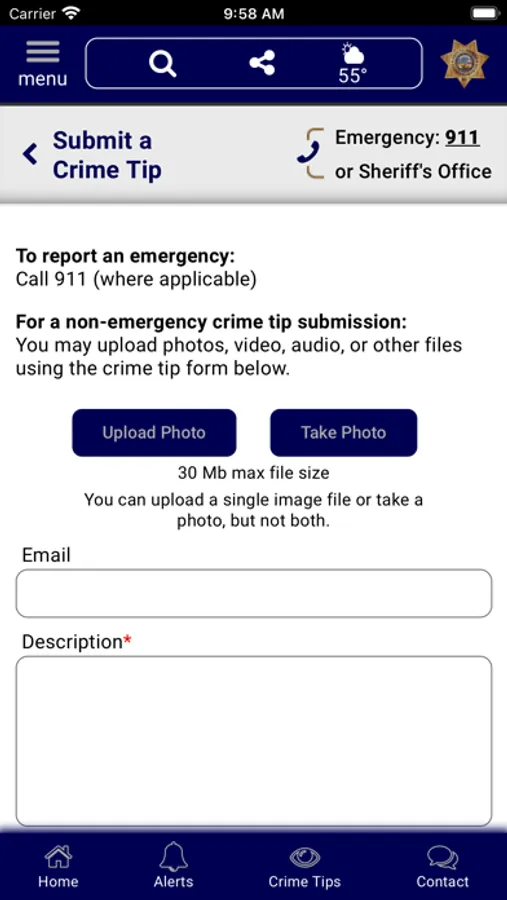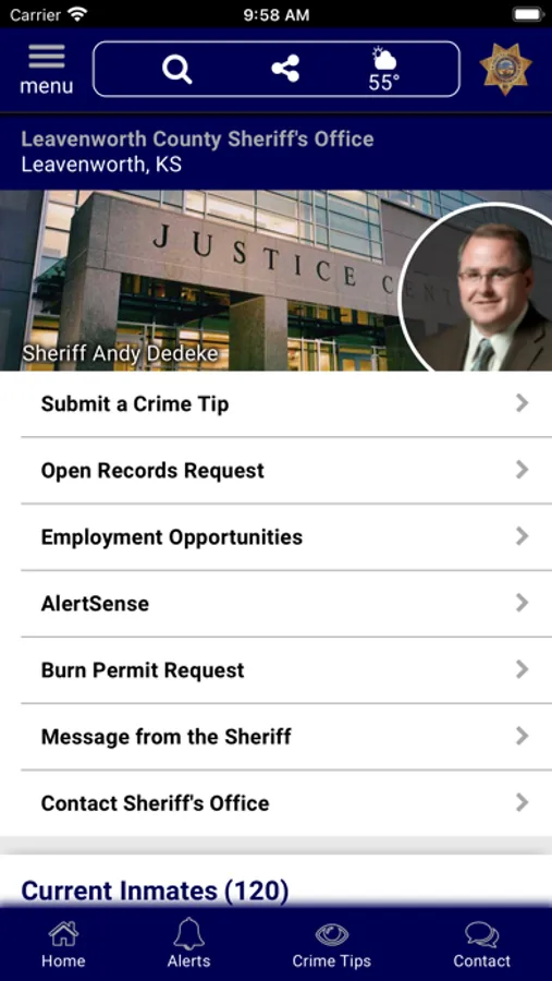 The app has public information for press releases, inmates, most wanted, sex offenders, special alerts, and FAQ's. Crime tips and contact us messages can be sent to the S.O.