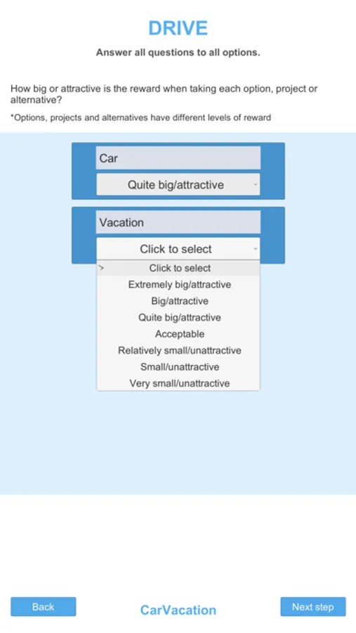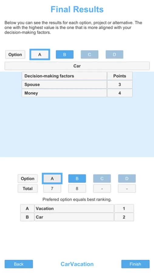 My Perfect Tulip is an app that helps users to evaluate several options when in the middle of a decision making process. It is based on the information provided in the book “The perfect Tulip”. Users can input the options they want to evaluate and the app will provide some questions based on DISC personality types. Based on the answers provided the app provides a preliminary result. On the final steps of the process, the user can compare the options and finally visualize which one is more aligned with their decision making-factors, and thus the most convenient.