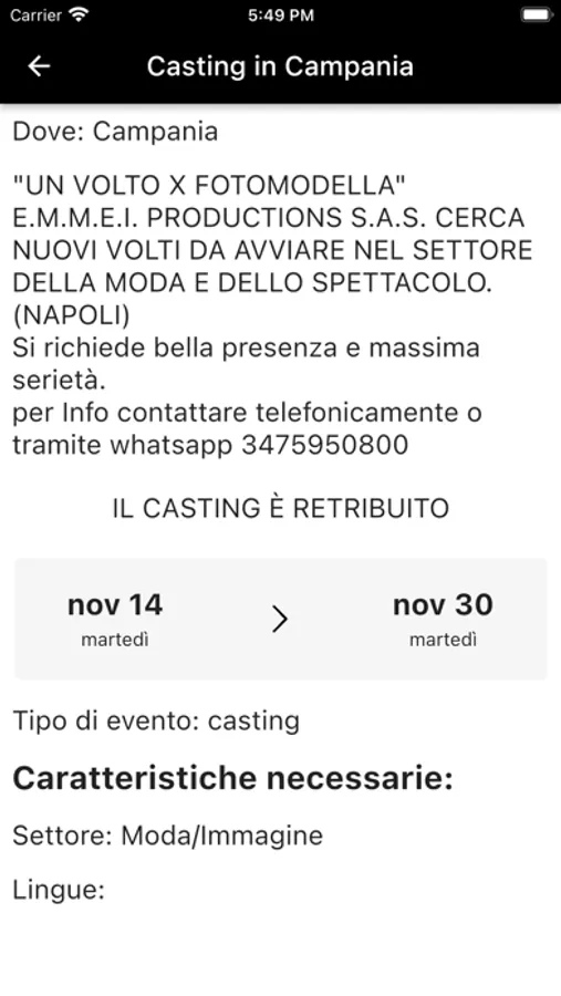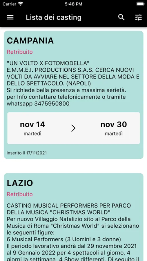 Ricevi in tempo reale tutti i casting a livello nazionale adatti alle tue caratteristiche ed alle tue doti artistiche.