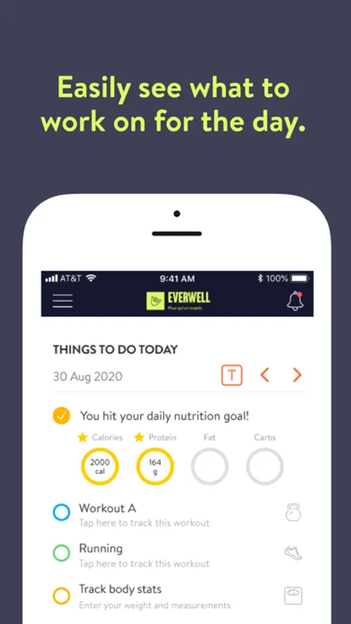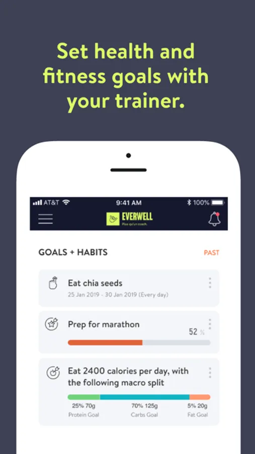 With the Everwell Pro App, you can start tracking your workouts and meals, measuring results, and achieving your fitness goals, all with the help of your personal trainer.