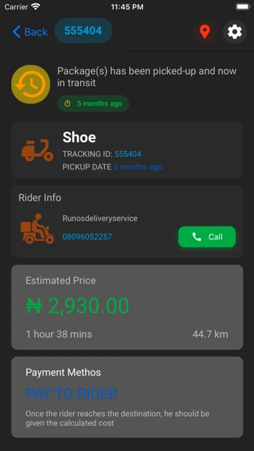 * Track your package: Meet your dispatch rider at the pickup location and track your package to its final destination.