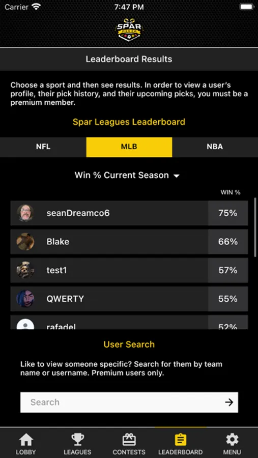 SparPicks gives you a shot at winning real cash prizes picking sports teams in NFL, NBA, and MLB. Join free picks contests or create pickem leagues with friends. Premium users can see the hottest picks from top performers and use them in the sports betting world. Our advanced data segmentation lets you see the insight of the best sports picking players in the world.