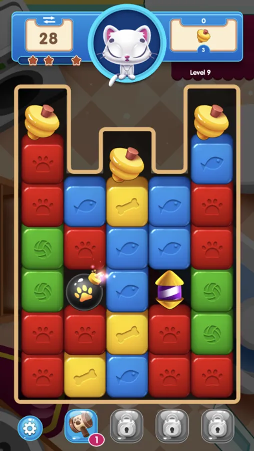 Player could choose boosters to got a highest score at each level of puzzle match kit game.