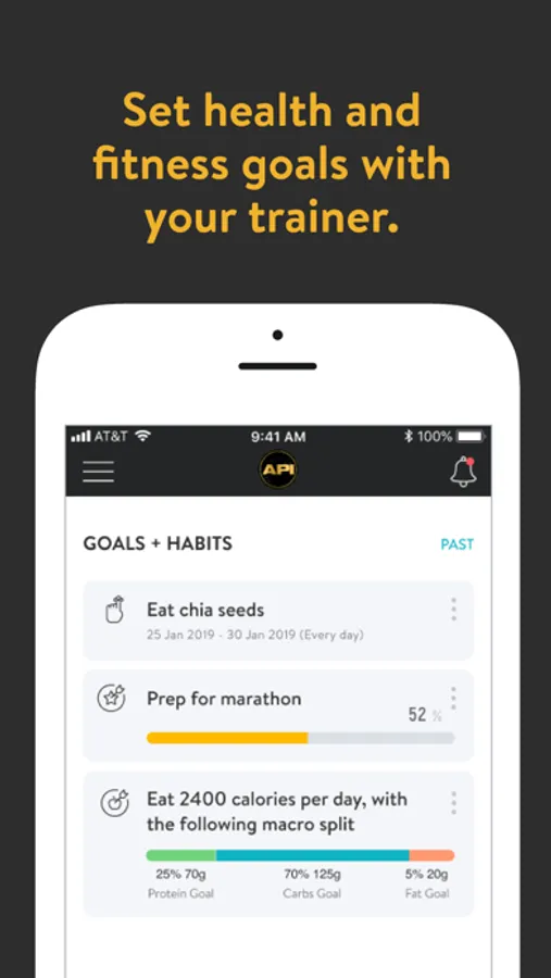 With the API Elite App, you can start tracking your workouts and meals, measuring results, and achieving your fitness goals, all with the help of your personal trainer.