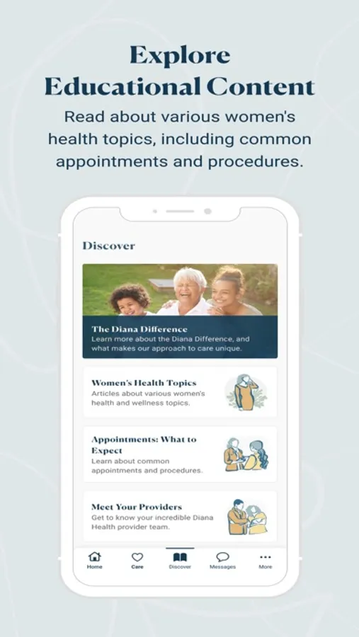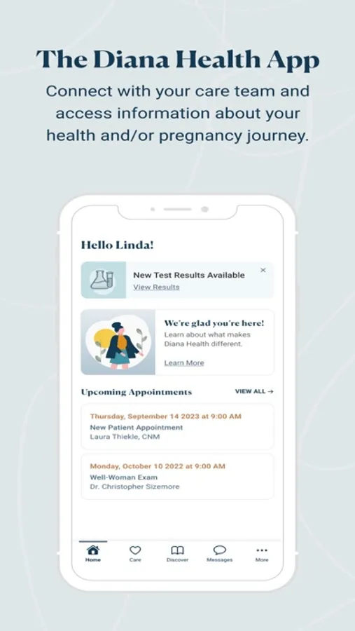 The Diana Health app enables patients to take control of their care from the convenience of their home. Access details about upcoming appointments, message your care team, view test results, and more!