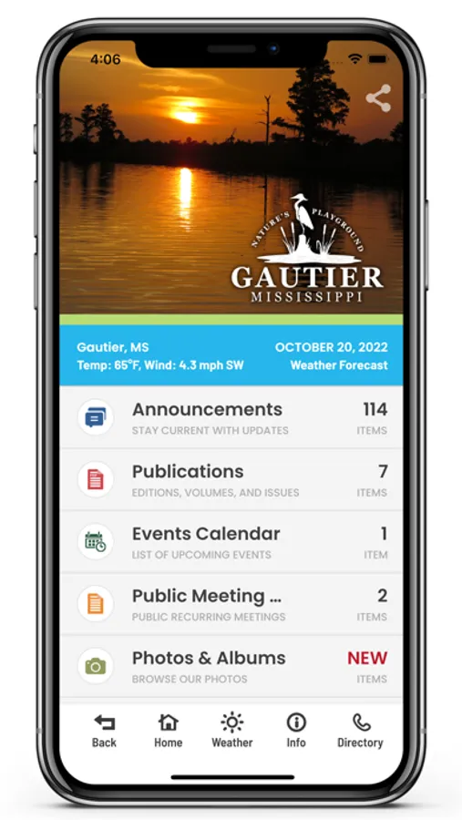 Welcome to the beautiful city of Gautier! Pronounced GO-chay or GO-shay depending upon whom you ask, Gautier is a young and growing city in the heart of the Mississippi Gulf Coast. Whether a visitor or a resident, this app is designed to connect you with all our great city has to offer. Download this app to view public meetings, receive important alerts, download forms, and much more!.