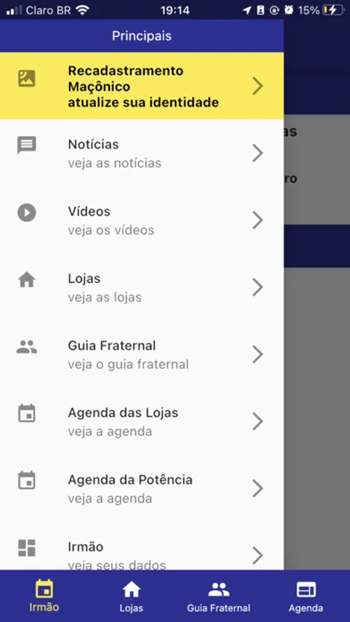 É possível também pesquisar calendários, marcar e retirar presenças de irmãos nos eventos e também disponível a visualização da Identidade Maçônica.