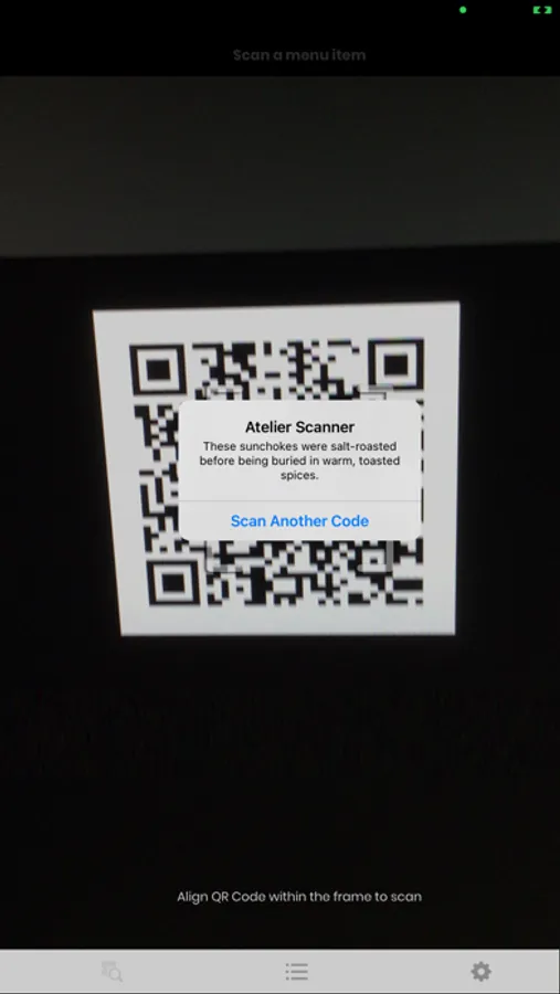 A QR reader for Atelier, a restaurant in Ottawa, Canada