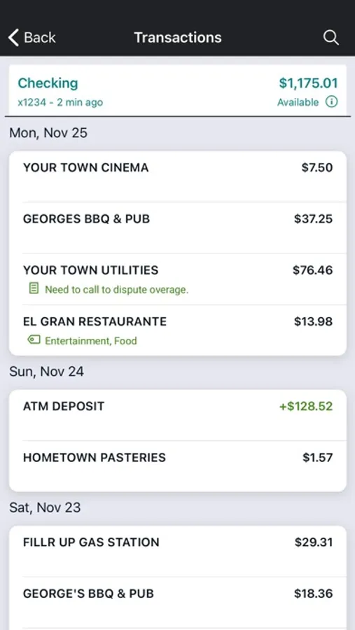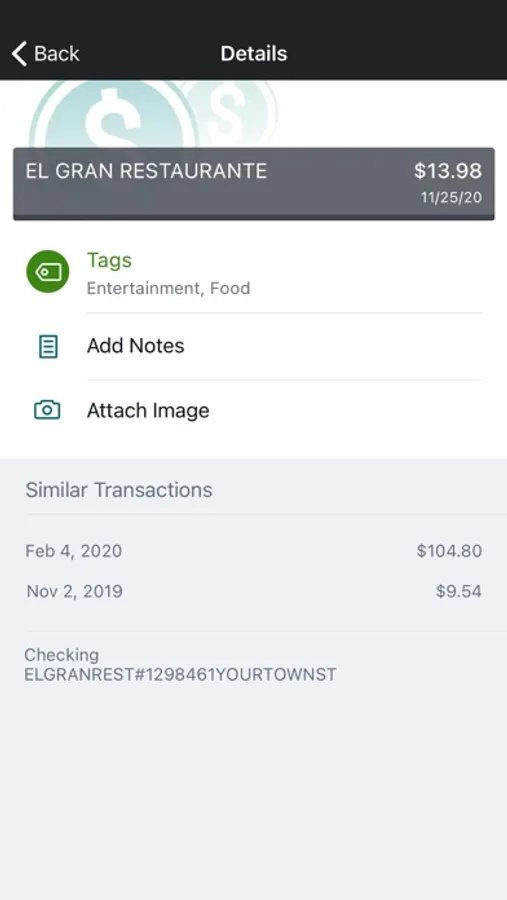• Keep your transactions organized by adding tags, notes and photos of receipts and checks