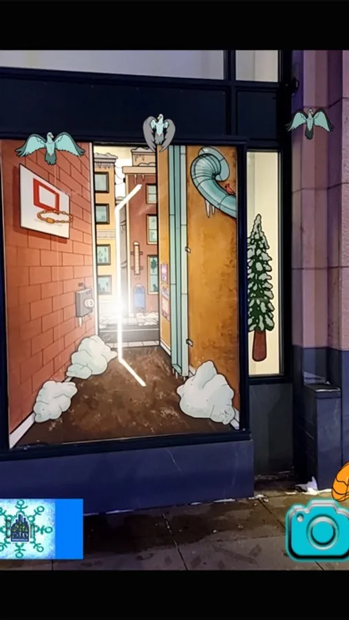 Download the Minne-Snow-Ta app . Then, come downtown to 6th & Nicollet and look at the windows through your phone app to see the art come alive!
