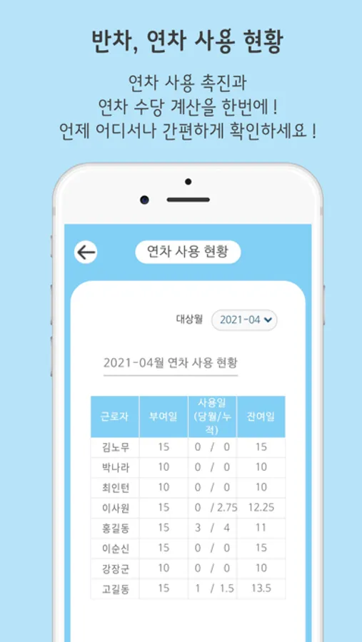 모바일 급여명세서, 노무, 인사, 연차, 근태 현황 관리 프로그램으로써