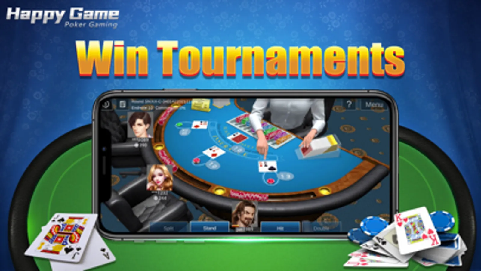○ "Happy Game" is only for adult viewing and entertainment. Success in social casino gambling will not reward real money prizes, nor can it guarantee success in real money gambling.