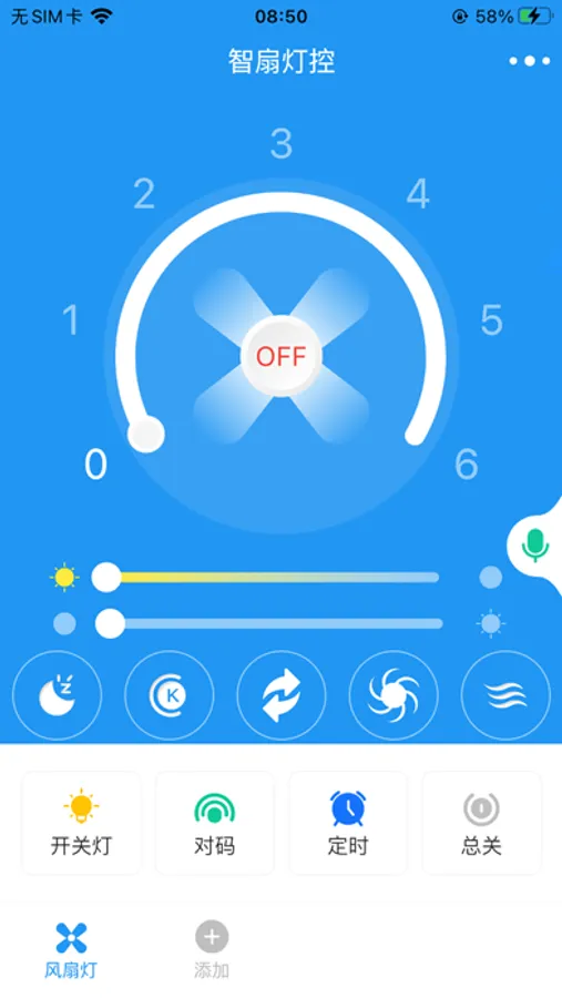 智扇灯控是一款为用户提供智能生活的工具,用于本地环境的智能调节应用,配合本地智能硬件,可以方便快捷的使用手机实现对风扇的智能控制。主要用于用户控制风扇的灯光以及开关,实现智能家庭生活的好帮手。