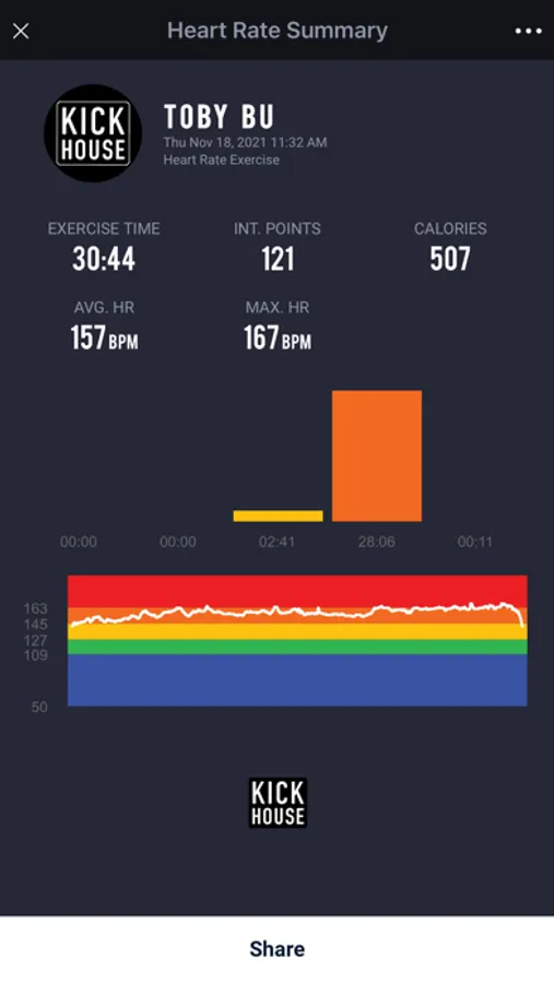 • View calorie burn per minute of a workout