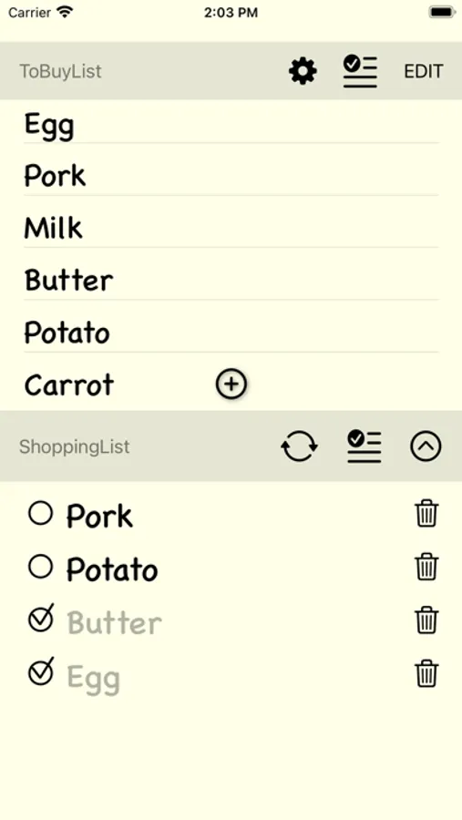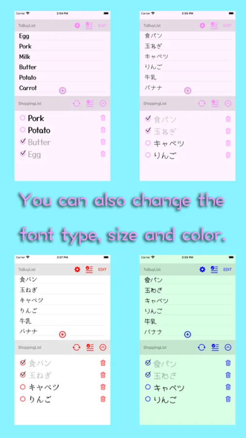 It's a simple and easy-to-use shopping list that allows you to customize colors and fonts.