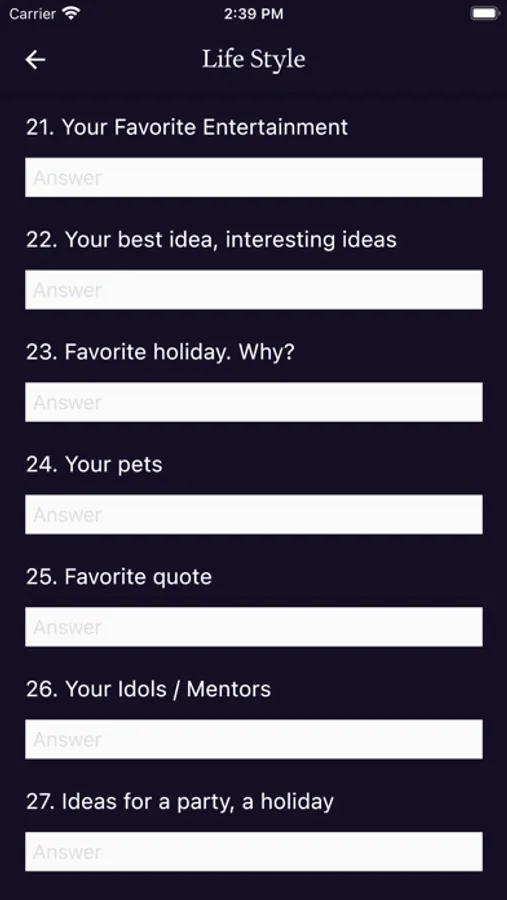 An amazing world of questions that will take you on an exciting journey through your life. Unique categories with questions and digests will give you new emotions.