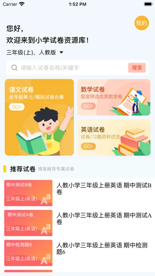一款小学试卷库,年级、学期、版本皆可选,试卷可预览和下载;小学试卷app帮助您节约了大量东奔西走选试卷的时间,一部手机就可以搞定孩子选试卷费事、费时、费力的问题。